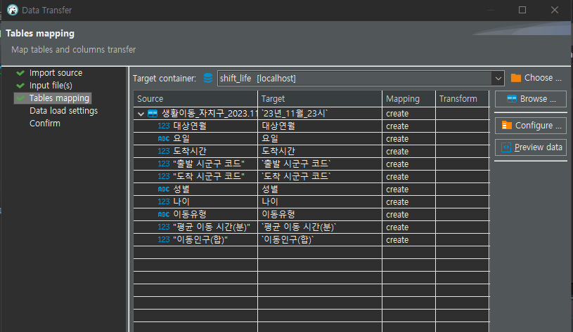 다음과 같은 것 때문에 이동인구(합) 부분에 *로 되어있는 것이 있어 import할 때 에러가 났던 것이다