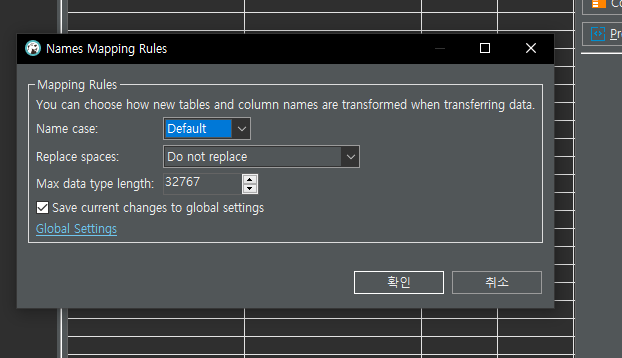 - 한글, 특수문자, 띄어쓰기가 이름에 포함된 테이블 불러올 때